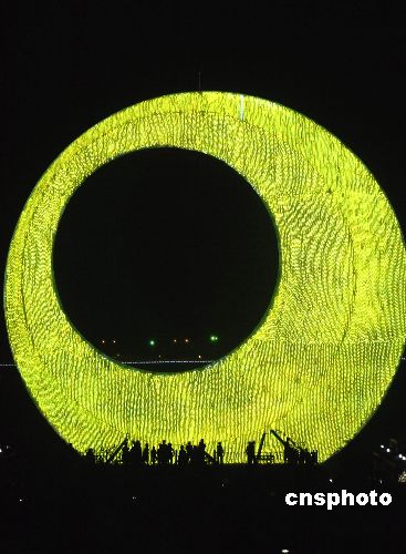 九月二十三日晚,離中國傳統中秋佳節只剩兩天的時間,大批中外游客紛紛前往廈門園博園觀賞外環直徑達三十六米的巨型“月光環”。 中新社發 王東明 攝