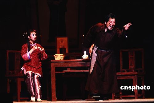 由臺(tái)灣辜公亮文教基金會(huì)與臺(tái)北新劇團(tuán)合作推出的新編京劇《原野》十月六日將在北京保利劇院首演。臺(tái)灣海基會(huì)已故董事長(zhǎng)辜振甫的長(zhǎng)女辜懷群和次子辜成允五日齊聚北京共同推介該劇。臺(tái)灣京劇名角李寶春(圖中飾仇虎者)和臺(tái)灣京劇小花旦黃宇琳(圖中飾金子著)領(lǐng)銜演出。中新社發(fā) 徐長(zhǎng)安 攝
