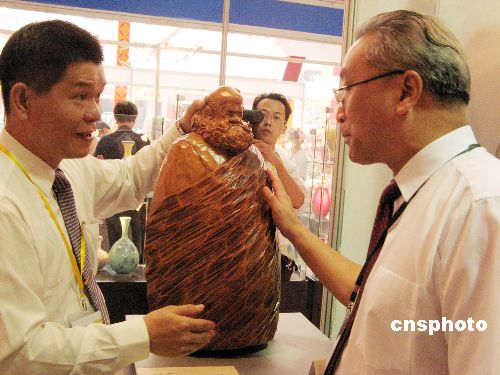 備受關注的第二屆中國(莆田)海峽工藝品博覽會二十七日在媽祖的故鄉——福建莆田揭幕,來自緬甸、越南、臺灣、香港等國家和地區三百多家企業的萬余件海峽兩岸工藝精品紛紛亮相,具有臺灣特色的佛像、木雕、牙雕、陶藝、玉雕尤其吸引了眾人的目光。