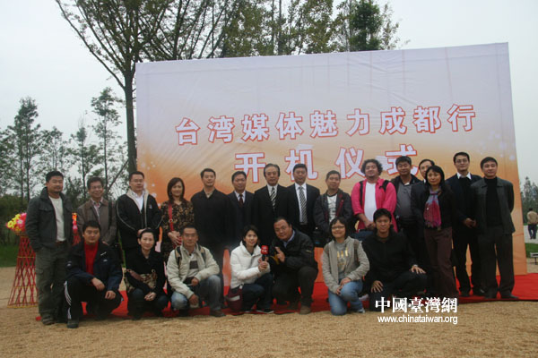 臺灣媒體記者們和成都市領導在開機儀式前合影留念(攝影:陳寧)
