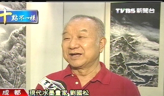 據臺灣TVBS報道,微蹲馬步,劉國松在大陸水墨畫家李華生的家里揮毫,讓人們見識到他畫畫像練氣功的功夫。