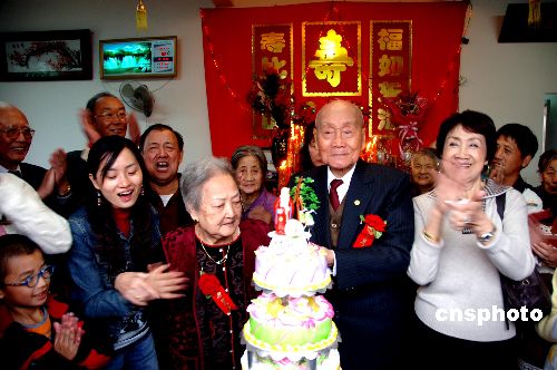 10時(shí)30分許,拜壽開始,潘祖培與妻子端坐在廳堂,接受親友們叩拜祝福。叩拜者中,年齡最大的是潘老當(dāng)年教過的福州英華中學(xué)學(xué)生,已經(jīng)86歲;而最小的族親才數(shù)月大!翱吹剿麄,倍感親切。”潘祖培說。