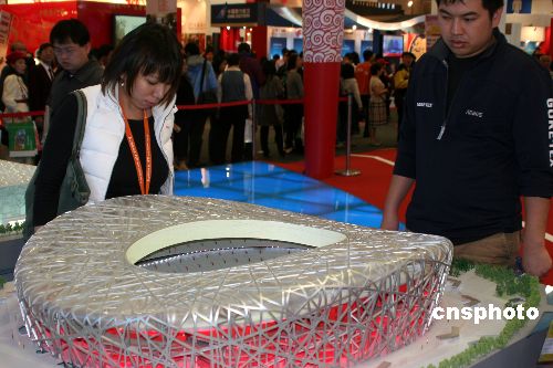 十二月十四日,第二屆海峽兩岸臺(tái)北旅展在臺(tái)北世貿(mào)展館開幕。圖為奧運(yùn)和世博展區(qū)內(nèi)的北京奧運(yùn)會(huì)主場(chǎng)館“鳥巢”模型,吸引觀眾駐足欣賞。 中新社發(fā) 董會(huì)峰 攝