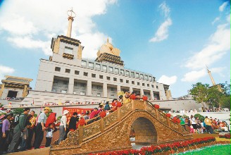 靈隱寺送給中臺(tái)禪寺一座“金橋”,信徒爭(zhēng)相通過這座象征溝通和解脫自在的“法橋”。(聯(lián)合報(bào)圖)