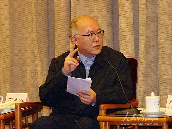 浙江省原省長(zhǎng)、人事部原副部長(zhǎng)萬(wàn)學(xué)遠(yuǎn)在座談會(huì)上發(fā)言。