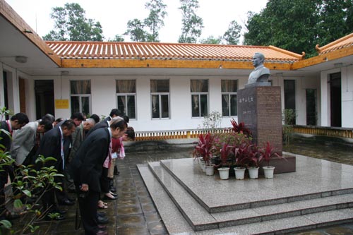 一張張照片,一個個傳奇,一段段歷史,一點一滴的記憶,喚起了歸僑們對中華民族以往輝煌的記憶,也感受著先賢們當年為民族復興而付出的艱辛努力。想著中華民族的腰稈越挺越直,卻被那一灣淺淺的海峽隔斷了骨肉親情,讓無數華夏兒女品味鄉愁之苦澀,團員們唏噓不已。自動自發地,他們在孫中山先生像前列隊致敬,深深三鞠躬,是對先賢的崇敬與拜祭,也是一份沉甸甸的誓言:中華民族的統一與偉大復興是不可逆轉的,我們每一個人都將為之奮斗終身!