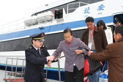 臺輪金星號將于當天下午3時30分左右靠泊和平碼頭。在此條航線上跑的兩岸各4艘客輪中,“金星”號客輪是最新加盟的,去年10月才剛剛投入。家在高雄的大副高建輝先生表示,對這條航線很有信心。他一邊指著船上張掛的各色彩燈、彩帶和春聯,一邊很坦然地告訴記者,自己根就在福建,去年元宵節還專門到長樂尋根。“兩岸一家親,不管做什么都很容易溝通”,他手里拿著兩盤全新的DVD音樂帶《新年熱鬧鬧》、《雙星報喜》,說,“這些都是昨天在廈門買的。掛上了紅艷艷的彩帶啊什么的,真得感到過年好溫馨,船一開,我們就把這兩個帶子放出來給大家聽,一定會更熱鬧!”