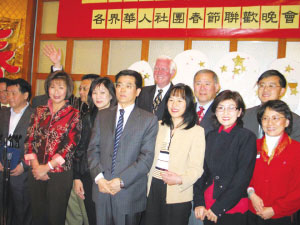 南灣許多華裔民選官員在聯歡晚會上也紛紛登臺向灣區僑團頒發賀狀,共慶中國農歷新年的到來,也祝賀當地華人華僑新年愉快。(陸杰夫)