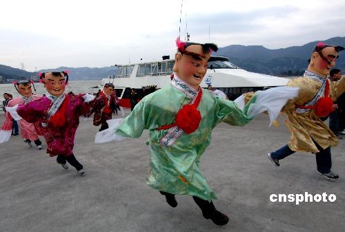 二月十七日下午,馬祖“電音孩仔隊”抵達福州馬尾客運碼頭,并現場表演起來。當日,馬祖“兩馬同春鬧元宵”交流團一行近九十人,搭乘“金龍”輪經“馬祖-馬尾”航線直達福州馬尾客運碼頭,準備參加元宵節慶;顒。 中新社發 王東明 攝