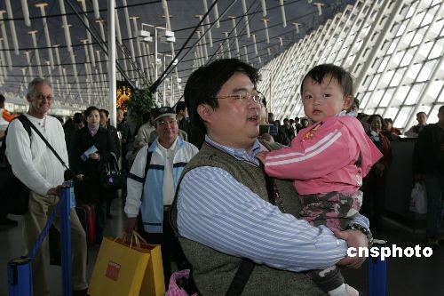 在今天的候機人群中,一歲多的許姓小臺胞成為包機上的首位“特別乘客”,她在爸爸的懷抱中顯得對包機非常好奇。年邁的輪椅乘客、孕婦及兒童也率先享受包機“綠色通道”的溫馨服務。