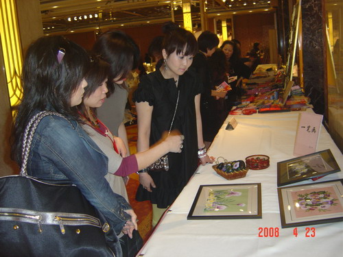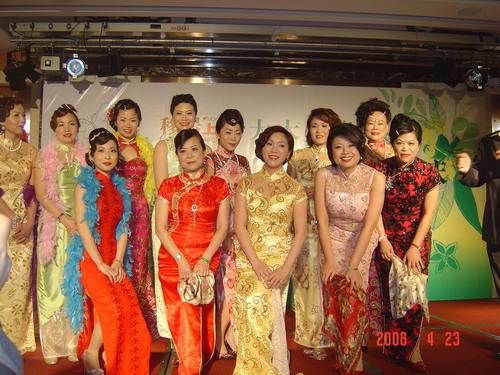 臺(tái)灣太太模特隊(duì)在走秀后的合影。(張玉龍攝)太太們?cè)谟^賞臺(tái)灣太太的“優(yōu)秀作品”(張玉龍攝)
