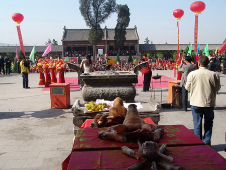 近年來,每逢農歷三月十八,都有規模盛大的民間祭祀活動。臺灣同胞和海外僑胞們,屆時也不遠萬里,不辭辛苦前來朝拜和祭祖。今年臺灣的中華地母至尊道教會,中華道教仙福地母至尊文化交流協會,臺北瀘州護天宮地母管理委員會,臺中仙福堂地母至尊總會等民間團體組織了上百名信眾前來參加大典。他們按照中華民族的傳統習俗,進行了獻貢品、讀祭文、祭先祖、求圣土等謁祖朝圣活動,虔誠的祈禱兩岸風調雨順、互利共贏。