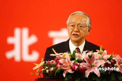 資料圖片:二00六年四月十四日,國共兩岸經貿論壇在北京開幕,著名經濟學家吳敬璉在論壇上發(fā)表演講。 中新社發(fā) 盛佳鵬 攝