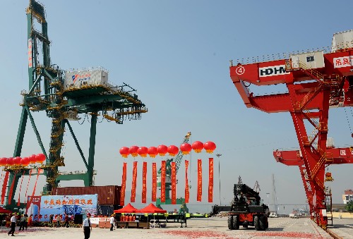5月16日,福州馬尾兩岸直航貨運專用碼頭——福州港中盈8號碼頭竣工正式投入使用。福州馬尾是祖國大陸離臺灣最近的國家級開發區和臺商投資區,馬尾兩岸直航貨運專用碼頭的建成,為加強兩岸經貿往來,擴大兩岸貨運直航提供了便利條件。 新華社記者 張國俊 攝
