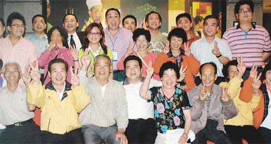 臺祥鶴旅游團(tuán)11名首批脫困團(tuán)員,昨天晚上接受成都市臺商協(xié)會宴請,許多團(tuán)員合影時比出“ya”手勢,慶幸歷劫歸來。(中央社) |