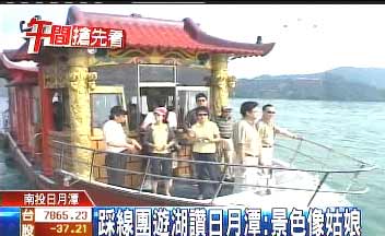 據(jù)臺灣TVBS報(bào)道,大陸踩線團(tuán)到日月潭觀光,當(dāng)然不會錯過搭船游湖這個行程。2艘豪華游艇,早就在湖邊等候,等待踩線團(tuán)成員一上船,直奔邵族祖靈地那魯島。
