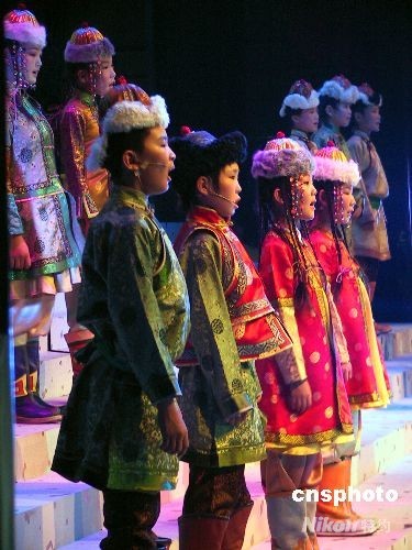 來自大陸呼倫貝爾的二十九個內(nèi)蒙古的孩子二十三日晚間登上臺北“國父紀(jì)念館”的大禮堂,為寶島臺灣的觀眾朋友帶來了大草原的天籟之音。 中新社發(fā) 徐長安 攝