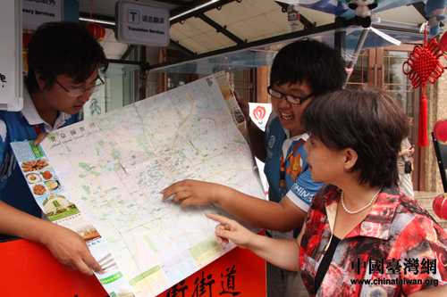 臺灣青年北京街頭體驗奧運,為民眾提供志愿服務。(攝影:李徽)