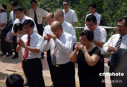 八月十四日,中國國民黨主席吳伯雄回到祖籍地--福建永定縣下洋鎮(zhèn)思賢村,前往祖墳祭拜祖先。圖為吳伯雄夫婦一行向祖墳上香。 中新社發(fā) 鄭祚聲 攝