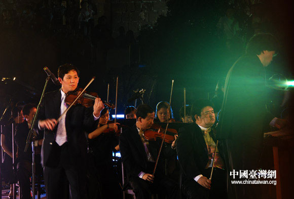 中國臺灣網8月28日湖南消息 “中國心·兩岸情——鳳凰之夜”音樂晚會8月27日晚在湘西古城鳳凰舉行,來自臺灣交響樂團、湖南交響樂團的藝術家紛紛登臺獻藝,參加“第八屆湖湘文化之旅”的兩岸師生和全國觀眾通過晚會同賞古城風光,共敘兩岸情。