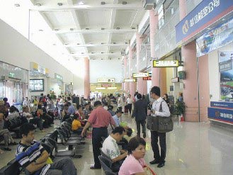 臺灣中部地區(qū)是臺商的大本營,業(yè)界全力爭取開放清泉崗機(jī)場直飛廣州、南京及北京。圖為清泉崗機(jī)場旅客大廳等機(jī)的人潮。臺灣《經(jīng)濟(jì)日報》圖