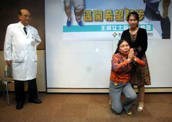 中新網9月9日電 江蘇罹患淋巴水腫的象腿女孩王程,在臺北萬芳醫院經過三個月治療后康復,今天下午將搭班機返回大陸。王程穿上16年來夢昧以求的裙子走路亮相,她說,主治醫師許文憲給她新的生命。王媽媽一再跪謝說“謝謝臺灣,感激。”