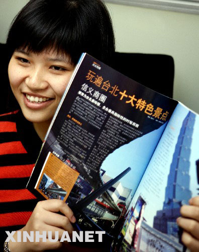 11月26日,一位女孩在介紹《暢游臺灣》雜志。 近日,《暢游臺灣》雜志在上海面世。該雜志深入介紹了臺灣的自然風光、歷史人文、時尚消費、生活模式等!稌秤闻_灣》雜志由國臺辦主辦,臺灣旅奇國際有限公司經營、發行。 新華社記者張明攝