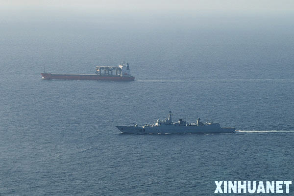 1月12日,在中國海軍護航編隊的亞丁灣護航行動中,“武漢”艦(右)在護航。當?shù)貢r間1月12日6時(北京時間11時),中國海軍護航編隊為包括臺灣商船“宇善”號在內(nèi)的4艘船舶組織實施護航。這是中國海軍護航編隊抵達亞丁灣以來的第2次護航行動。 新華社發(fā)(錢曉虎攝)