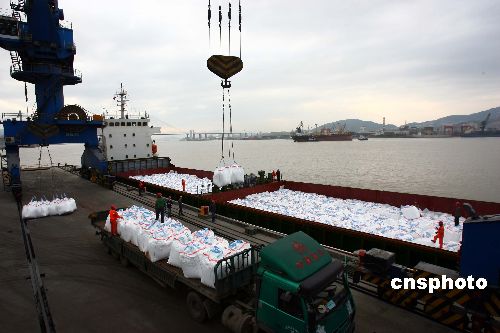2月1日,位于福州長樂市閩江口洋嶼作業區的福建鑫通碼頭迎來第一艘來自臺灣的件雜貨輪寶宏3號。這艘從臺灣麥寮直航到鑫通碼頭的雜貨輪是與臺灣三通以來,抵達閩江口的最大一艘臺灣件雜貨輪船,這次從臺灣運來了5000噸化工產品。 福建鑫通碼頭2008年12月30日通過省市“一關三檢”部門驗收,成為福州市新增的外貿作業點。目前該碼頭有6個2萬噸級兼靠3萬噸海輪多用途泊位,年貨物吞吐量達百萬噸,面向港澳臺及世界各國的輪船停泊,總投資5.2億元人民幣,是目前閩江口南岸最大的綜合性碼頭。中新社發 祝敏松 攝