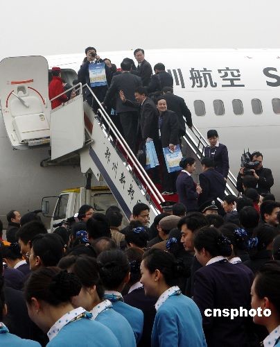 “一路順風,向臺灣同胞問好!”隨后,在徐光春等官員的叮嚀中,一百三十三名首航乘客依次登機。不一時,一架深航B七三七—八零零飛機飛機昂首起飛。這是河南直航臺灣的首班飛機,約一百五十分鐘后抵達臺灣桃園機場。