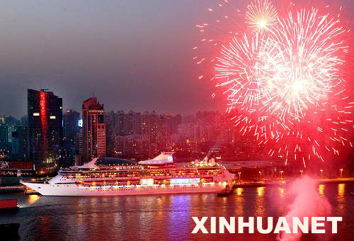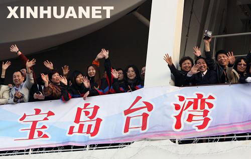 3月14日,載有1600名大陸游客的“海洋神話”號豪華郵輪從上海緩緩啟航。當日下午5時許,由中國港中旅集團組織的“安利心印寶島萬人行”首航臺灣啟航儀式,在上海北外灘上海港國際客運中心碼頭舉行,這是自兩岸基本實現“三通”以來的第一個郵輪赴臺旅游團。新華社發