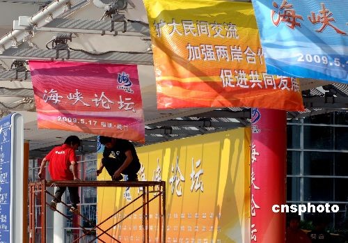 5月14日,廈門海峽會議中心工作人員在加緊布置會場內外,迎接前來參加5月17日在廈門開幕的“海峽論壇”的八千名臺胞。 中新社發(fā) 傅丹丹 攝