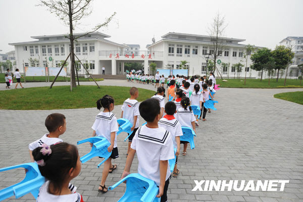 9月1日,都江堰頂新新建小學的學生們搬入新校舍。
