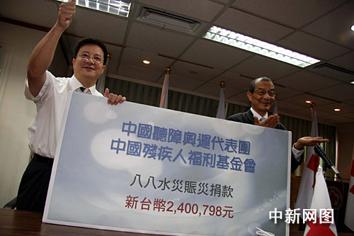 新華網(wǎng)臺(tái)北9月8日電(記者陳鍵興)正在此間參加第二十一屆聽(tīng)障奧運(yùn)會(huì)的中國(guó)代表團(tuán)8日派員前往臺(tái)灣紅十字組織,送交代表團(tuán)與中國(guó)殘疾人福利基金會(huì)向臺(tái)灣災(zāi)區(qū)的捐款2400798元新臺(tái)幣。