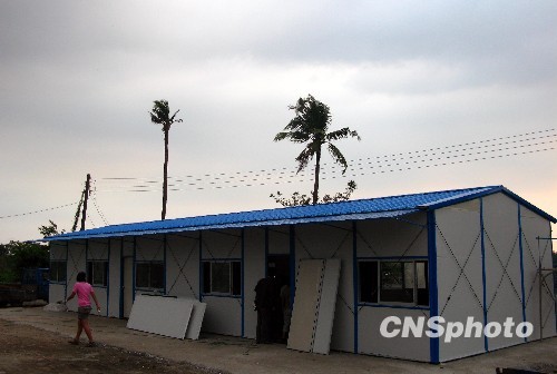 資料圖片:大陸捐贈臺灣災(zāi)區(qū)的活動板房在屏東縣佳冬鄉(xiāng)完成樣品屋搭建作業(yè)。 中新社發(fā) 劉舒凌 攝