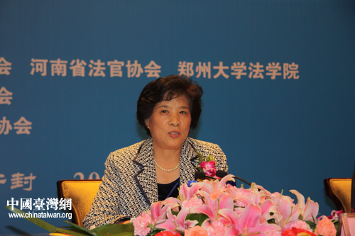 第二屆海峽兩岸法學學術研討會今日下午在河南開封閉幕,會議取得豐碩成果。圖為中國法官協會副會長王秀紅作總結報告。(中國臺灣網 楊麗 攝)