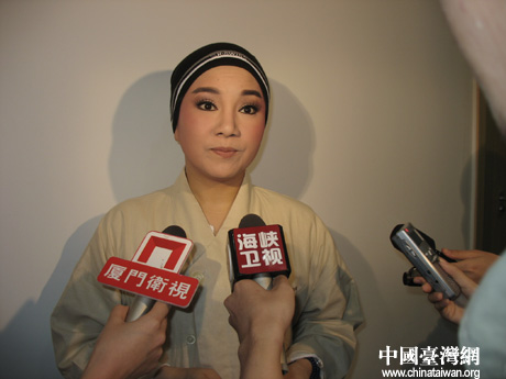 在該劇中反串“男主角”的唐美云是臺灣家喻戶曉的歌仔戲演員,本次劇目就是由唐美云歌仔戲劇團與廈門市歌仔戲劇團聯合創作演出的。關于兩岸的首次合作,唐美云表示,兩岸的歌仔戲演員在走法、唱腔、演法方面稍有差異,雙方的合作就是要把彼此的特色融合到一起。她認為,雙方的合作是非常開心的。
