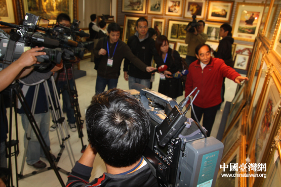 臺灣媒體“圍攻”湘繡大師艾玉奇老先生(中國臺灣網 陳寧 攝)