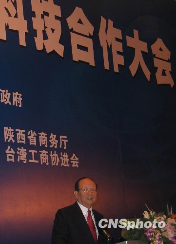 中國國民黨副主席蔣孝嚴十九日在西安出席海峽兩岸(陜西)經貿科技合作大會。此次活動旨在加強陜臺之間的經貿科技交流與合作,探討雙方在高新科技、能源化工、先進制造業以及現代服務業等方面的互補空間和合作前景。蔣孝嚴及一百八十多位臺灣工商界人士到會。圖為蔣孝嚴在開幕式上致辭。 中新社發 冽瑋 攝