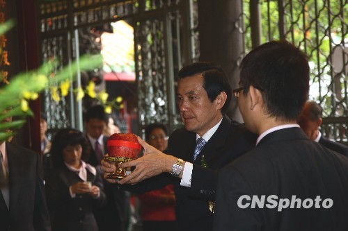 臺北龍山寺建寺二百七十周年紀念活動十二月十四日舉行,馬英九出席,并進行祈;顒。 中新社發 曾嘉 攝