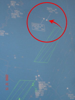 資料圖片:兩岸15日起正式開啟平日包機(jī),臺(tái)“民航局”臺(tái)北區(qū)管中心雷達(dá)屏幕,在上午8時(shí)47分顯示臺(tái)灣的復(fù)興航空與大陸的東方航空在新航路空中相遇。(圖:臺(tái)灣“中央社”)