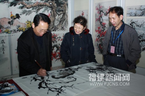 福建新聞網漳州一月八日電 (林國瑞 劉永明)十六名臺灣畫家攜帶五十多幅書畫藝術作品,應邀到福建詔安參展;臺灣歌手阿信激情高歌,為詔安觀眾獻上一場華美視聽盛宴;包括臺商在內的境內外客商與當地企業簽訂三十四個投資項目,總投資三十二億元人民幣。