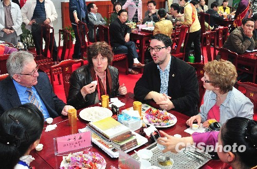2月27日,來自德國的嘉賓正在首屆海峽兩岸閩南文化節活動之一的“千人品茗”活動上,與上千名來自海內外嘉賓共同愉快感受茶藝!昂椭C海西·千人品茗”活動共有兩場,在泉州中國閩臺緣博物館內舉行。 中新社發 張麗君 攝