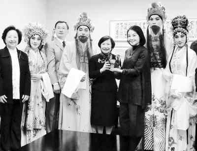 上海昆劇團(tuán)一行百余人跨海抵臺(tái),將于3月31日至4月5日,一連6天在臺(tái)北劇院上演8場(chǎng)全本昆曲《長(zhǎng)生殿》。29日,該團(tuán)到訪臺(tái)北故宮博物院。圖為臺(tái)北故宮博物院院長(zhǎng)周功鑫(右四)、上海昆劇團(tuán)團(tuán)長(zhǎng)郭宇(左三)、臺(tái)灣琉璃工坊楊惠珊(右三)等與扮演唐明皇和楊貴妃的演員合影。記者 王連偉 杜榕攝影報(bào)道