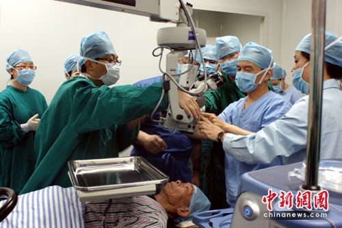 圖為醫(yī)生為白內(nèi)障患者做手術(shù)(項盛/攝)