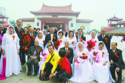兩岸金婚夫婦在祖廟前合影 圖片來源:福建日?qǐng)?bào)