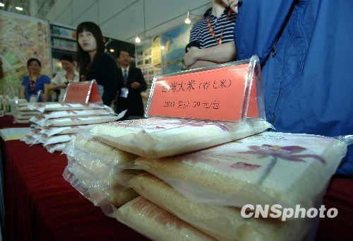 5月18日,在第12屆“海交會”的展館內,由國臺辦和國家質檢總局特批允許從福州口岸引進的臺灣大米在福州海峽會展中心臺灣館正式展銷。據悉,這是大陸首次正式從臺灣引進大米,是繼海交會水果零關稅登陸后的又一次突破。 中新社發 王東明 攝