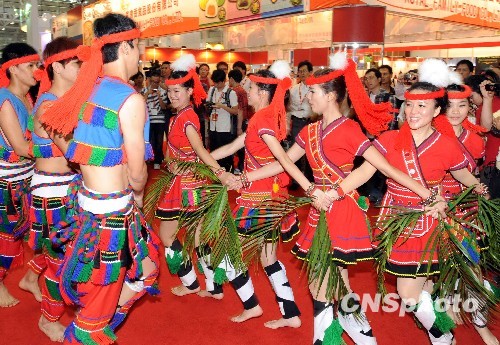 5月18日,第十二屆海峽兩岸經貿交易會臺灣館內臺灣少數民族歌舞表演吸引眾多觀眾的眼球,成為本屆海交會臺灣館最亮麗風景。當日,第十二屆海峽兩岸經貿交易會、第七屆中國福建商品交易會在新落成的福州海峽國際會展中心開幕。 中新社發 劉可耕 攝