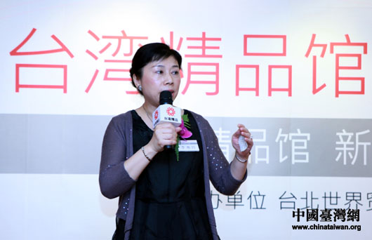 臺北世界貿(mào)易中心營銷項目處處長、“臺灣精品館”館長李惠玲在新聞發(fā)布會上致辭。(中國臺灣網(wǎng) 鐘寶華 攝)