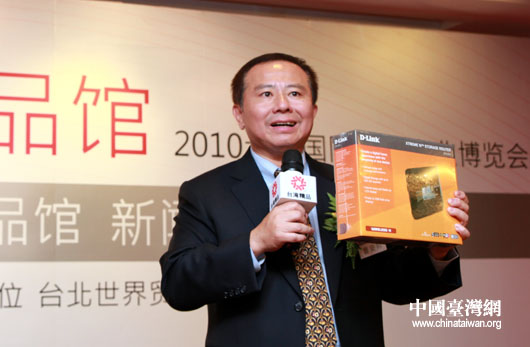 友訊科技公司執(zhí)行長曹安邦向大家介紹自己公司生產(chǎn)的精品路由器。(中國臺灣網(wǎng) 鐘寶華 攝)